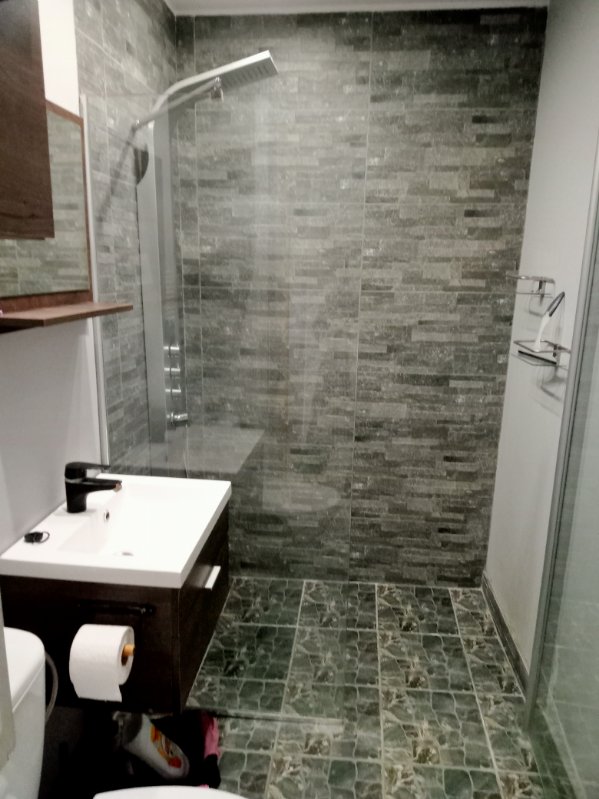 - Opis łazienki : po remoncie, prysznic, płytki,